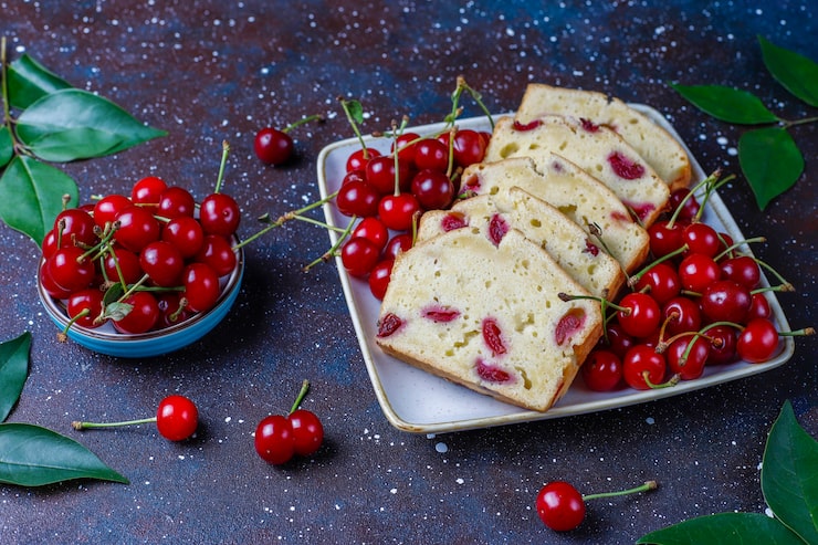 В тесто добавьте вишню, предварительно припудренную мукой. Осторожно перемешайте.