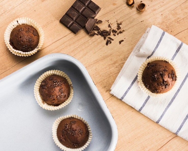 Чтобы покрыть кекс шоколадной глазурью, измельчите шоколад на небольшие кусочки. Нагрейте кокосовое молоко и добавьте его в миску с шоколадом. Перемешайте до получения однородной массы. Накройте пищевой пленкой и охладите полученную смесь в холодильнике в течение 30-60 минут.
