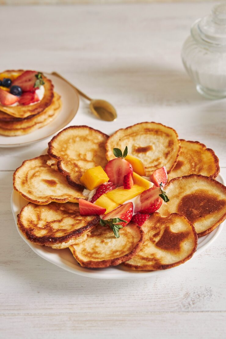 Для получения пышных оладьев тесто для них должно иметь консистенцию, близкую к густой сметане, а не быть жидким. Чтобы десерт получился воздушным, необходимо добавлять разрыхлитель или гасить соду уксусом – эти компоненты обеспечивают его пышность. Также по желанию можно добавить молотую корицу, ванильный сахар или какао-порошок.