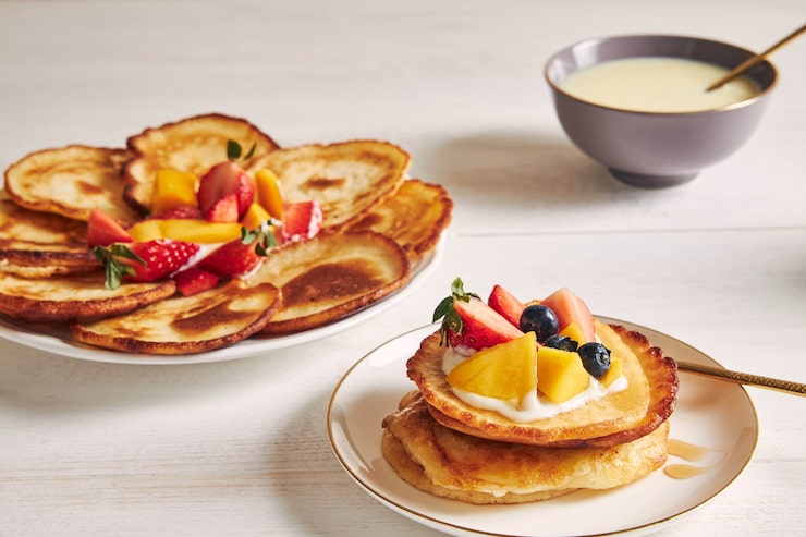 Свежеиспечённые оладьи следует немедленно подавать к столу.