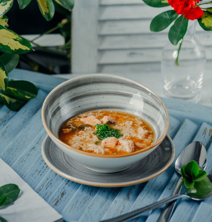 Утиный рисовый суп обладает насыщенным вкусом, высокой питательностью и является весьма сытным блюдом, что делает его прекрасным выбором для обеда в холодное время года. Если вы предпочитаете более легкий вариант, можно удалить излишки жира с утки. Рекомендуется подавать суп с несладкой выпечкой и сметаной.