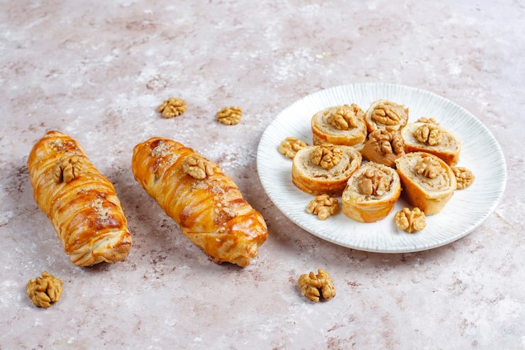 Рогалики с ореховой начинкой следует посыпать сахарной пудрой и подавать вместе с напитками. Насладитесь едой!