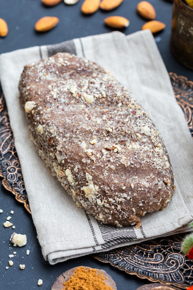 Аккуратно распределите тесто, сформировав пласт, затем сверните его в рулет, тщательно запечатывая каждый виток.