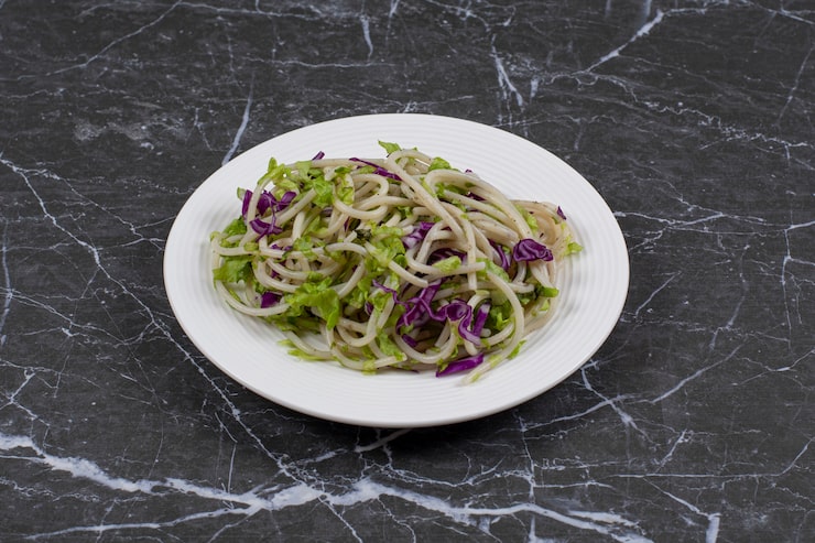 Тщательно перемешайте все ингредиенты. Салат из стеклянной лапши с соевым соусом готов к подаче.