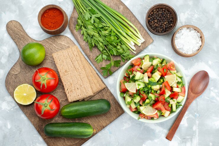 Что может быть элементарнее рецепта салата из помидоров и огурцов? Приготовить его очень легко и это займет всего несколько минут. По желанию, его можно улучшить, добавив другие компоненты.