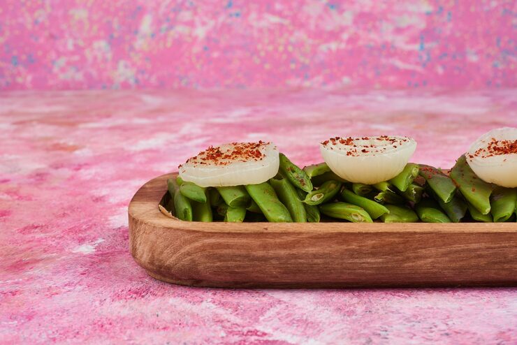 Для создания этого салата можно использовать спаржевую фасоль любого сорта. Не стесняйтесь использовать фиолетовую, желтую и зеленую стручковую фасоль.