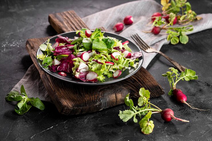 Предлагаю рецепт салата с двумя сортами редьки. Яркий, немного острый вкус редьки прекрасно сочетается со сметаной, а овощи придают салату сочность. В итоге получается легкое, пикантное и необычное блюдо!