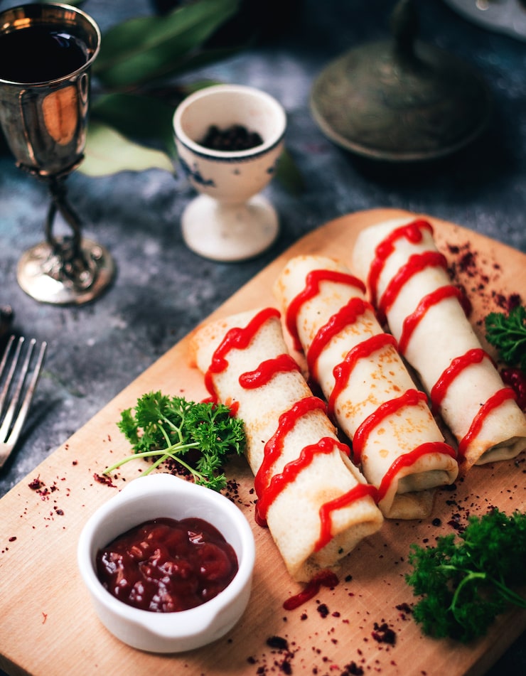 Этот салат, сочетающий блины и копченую колбасу, обладает весьма необычным вкусом. Чеснок добавляет ему пикантности, делая салат поистине изысканным.