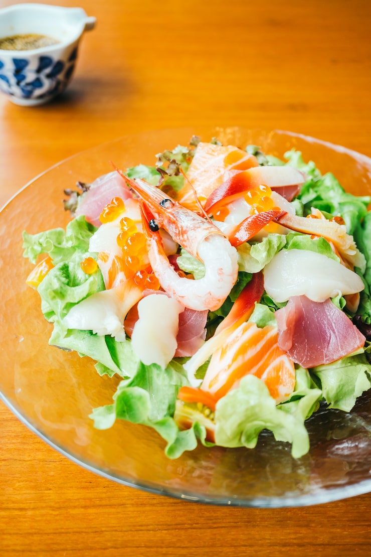 Приправьте салат лимонным соком и оливковым маслом, а также добавьте специи на ваш вкус.