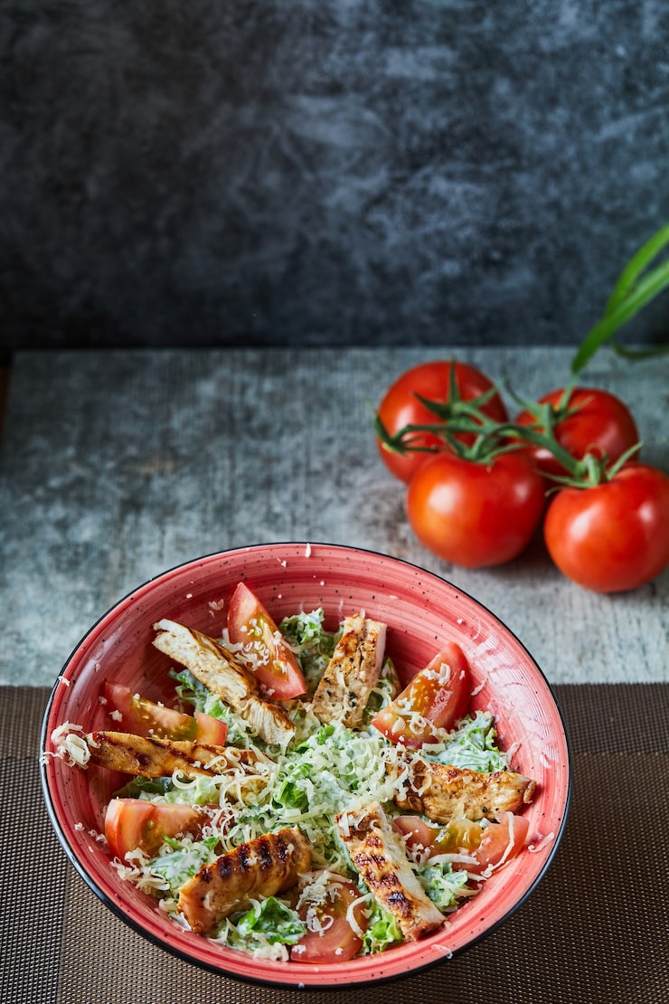 Этот салат легко и быстро готовится и подойдет как для повседневного обеда, так и для праздничного застолья. Он достаточно питательный, но благодаря помидорам обладает свежим и насыщенным вкусом.