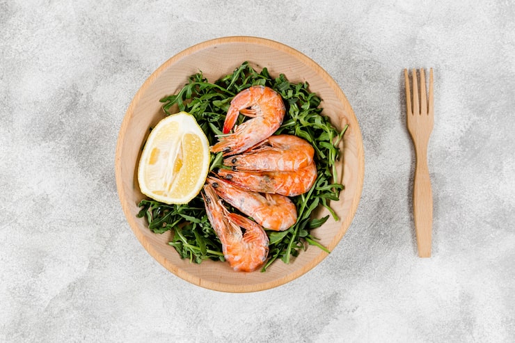 В салат добавляют креветки, обжаренные с чесноком и оливковым маслом.