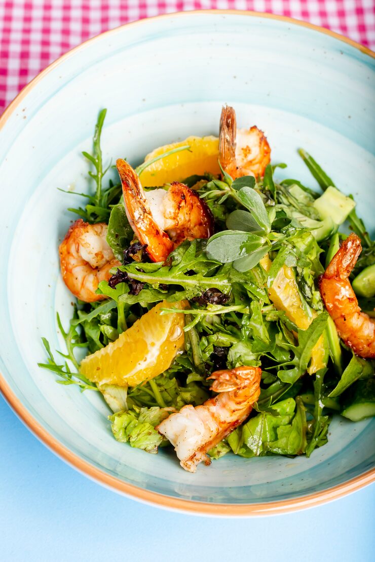 Рекомендуем подавать салат с креветками и зеленым луком. Приятного аппетита!