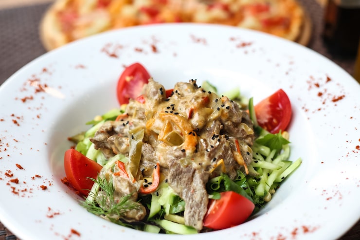 Этот насыщенный и аппетитный салат не только отлично подойдет для обычного обеда, но и станет изысканным дополнением к праздничному столу. Обязательно сохраните рецепт!