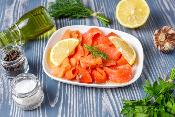 - Малосольная красная рыба 150 грамм (семга, горбуша, лосось)