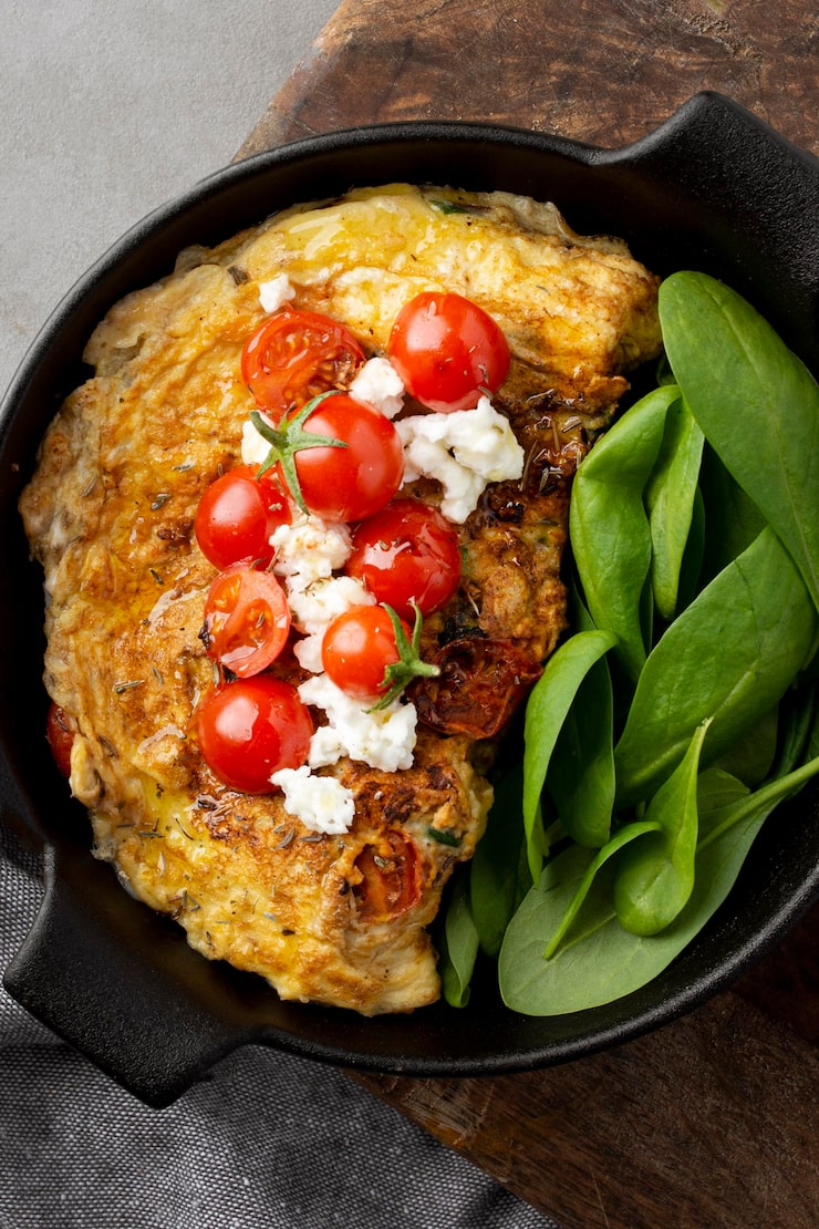 Омлет с салатом – отличный выбор для воскресного завтрака или несложного ужина. Этот салат можно сервировать как горячим, так и охлажденным.