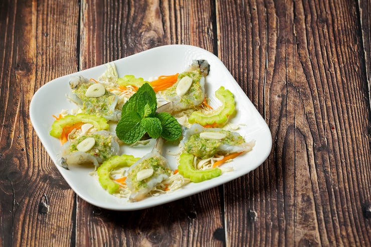 Соедините сахар, рисовый уксус и устричный соус. Полейте салат приготовленной заправкой и тщательно перемешайте. Добавьте масло и снова перемешайте.