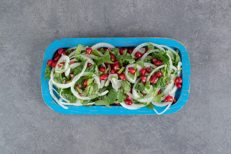 Смешайте все компоненты салата в большой миске, затем полейте заправкой и аккуратно перемешайте.