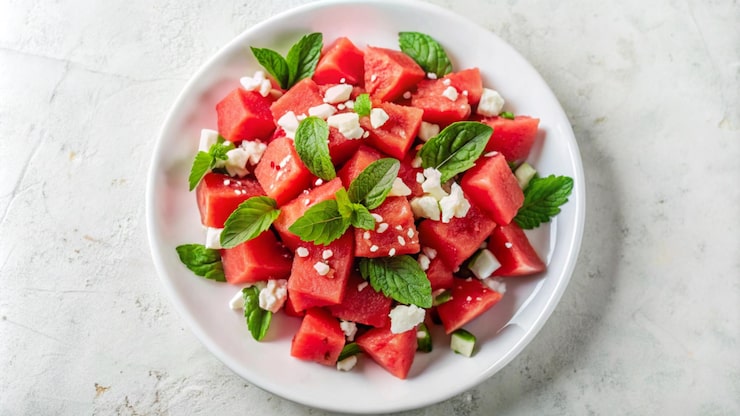 Арбуз – это не только прекрасный десерт, но и универсальный компонент для приготовления салатов. Заинтересовались? Тогда обратите внимание на этот простой и аппетитный рецепт, попробуйте воспроизвести его у себя дома.