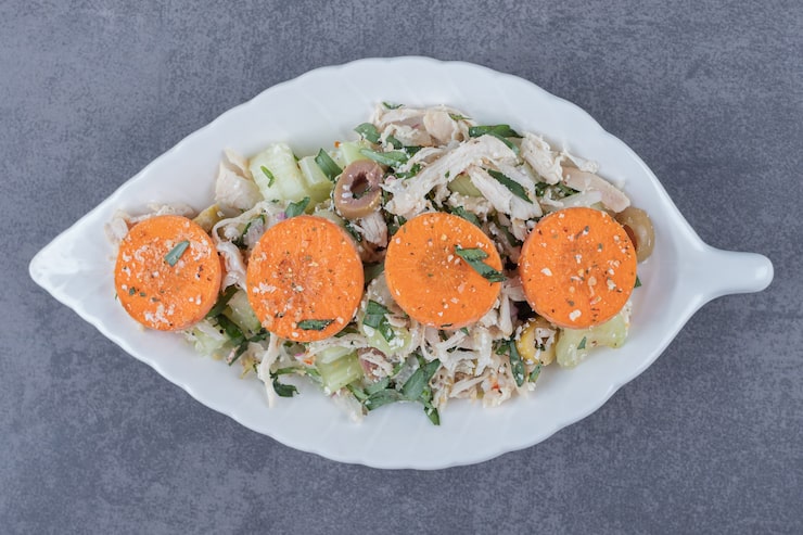 - Мы делим его на две части и используем для оформления салата «Тиффани”.