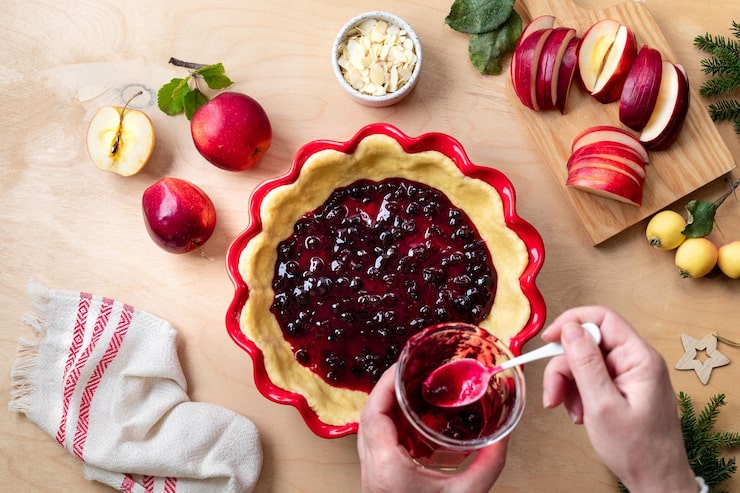 Использование темного варенья, например, из черной смородины или черники, может привести к окрашиванию теста и придать ему более темный цвет. В тесто следует добавить разрыхлитель и просеянную пшеничную муку высшего сорта.