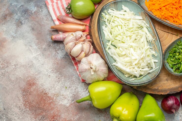 Пока измельчите ножом чеснок и зелень, доступную в данный сезон.