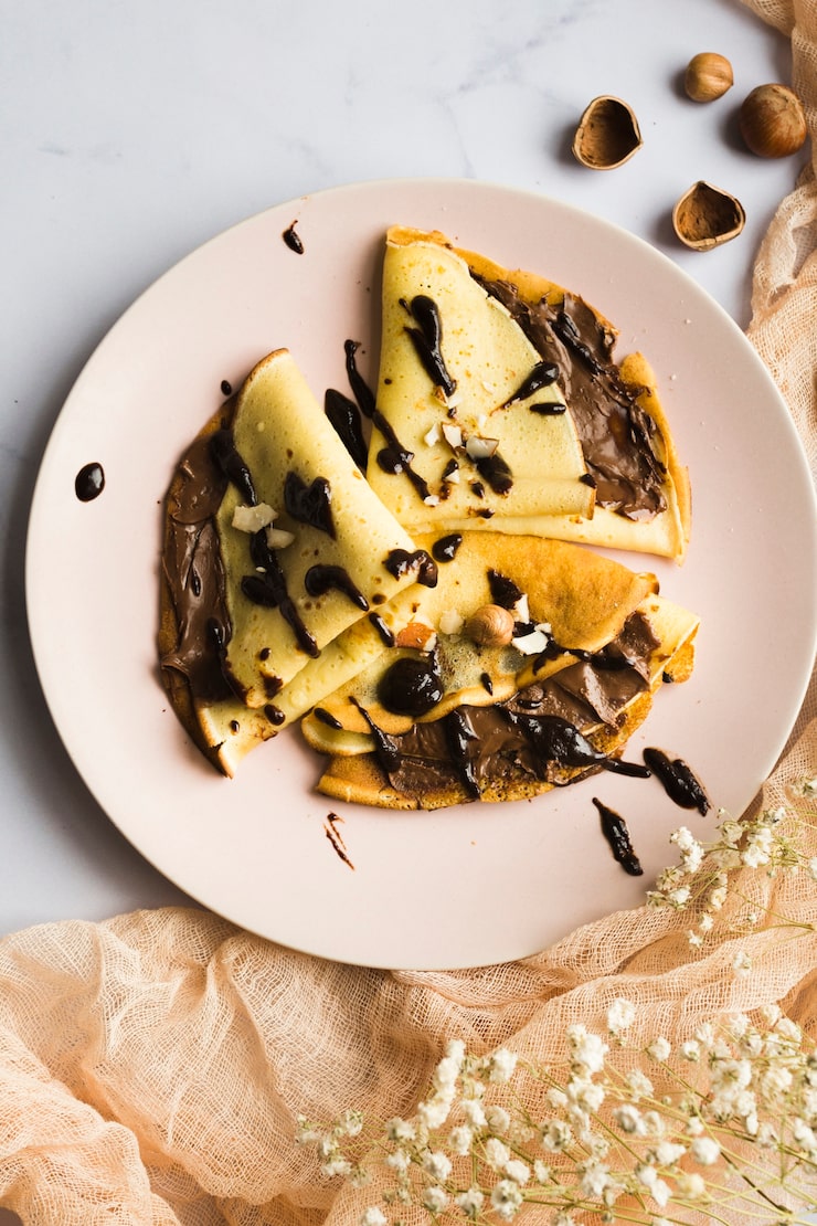 Шоколадные блинчики следует подавать теплыми, их можно украсить сметаной или йогуртом.