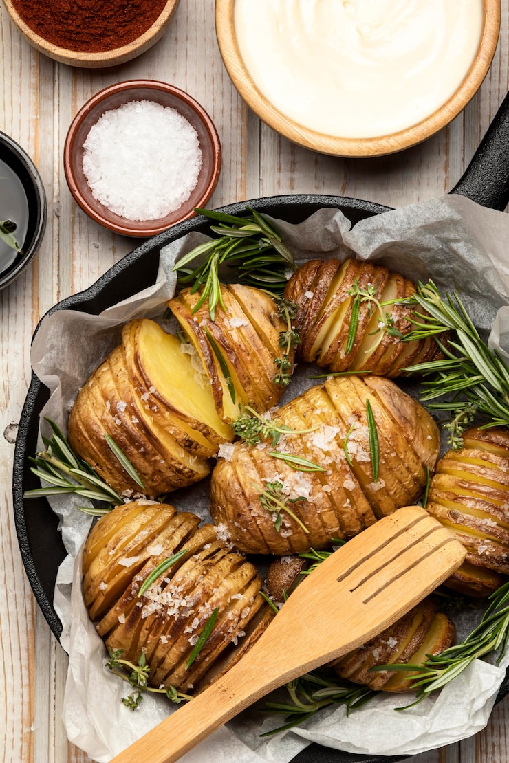 Выложите штрудли поверх картофеля.