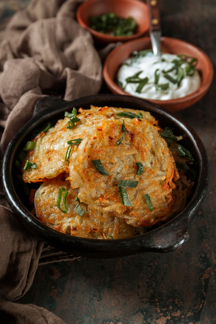 Эти луковые лепешки станут прекрасным дополнением к любому супу или послужат вкусным перекусом между основными приемами пищи. Для приготовления теста используется пресное основание на воде и растительном масле, а в качестве начинки берется обжаренный лук.
