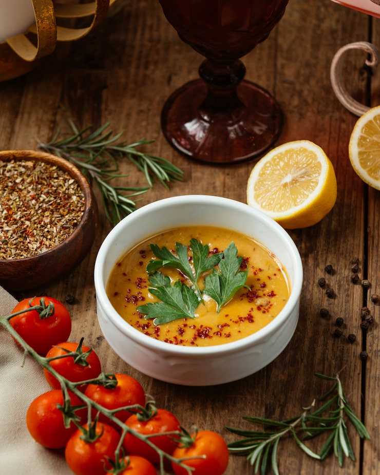 Аккуратно вылейте горячий бульон в пиалу с мясной лапшой. Позвольте ему немного остыть, затем посыпьте измельченным зеленым луком и петрушкой, а также добавьте перец чили.