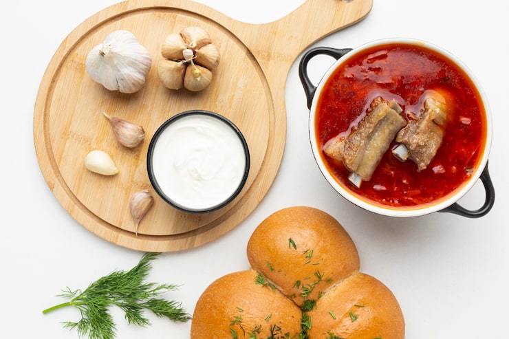 Обычно я варю этот легкий суп на курином бульоне. Хотя его можно приготовить и на воде. В этом случае я рекомендую добавить больше грибов, чтобы суп получился более насыщенным. Для приготовления супа из копченой рульки нам понадобится свиная копченая рулька, лавровый лист, а также соус из сметаны и муки.