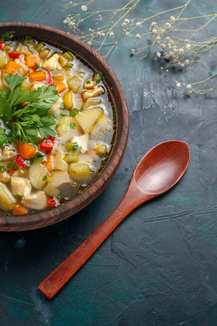 Начните с обжаривания измельченного лука, моркови и болгарского перца. После того как мясо будет готово, добавьте обжаренные овощи в суп.