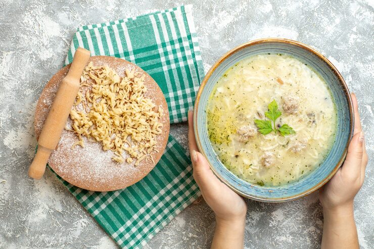 Приготовленный суп из киноа приправьте лимонным соком, солью и перцем по вкусу. Добавьте измельченную зелень.