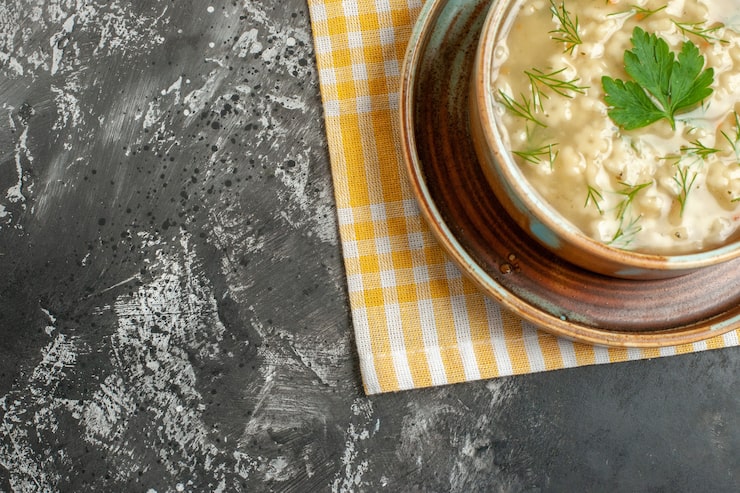 Сначала варится бульон. После этого добавляются лук и мука, и смесь варится до загустения. Затем добавляются остальные ингредиенты. Полученная масса измельчается в кастрюле с использованием погружного блендера.