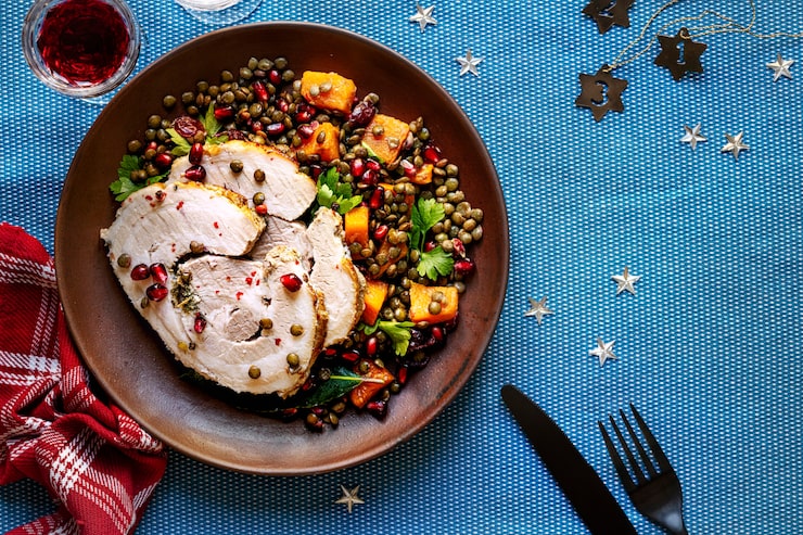 Предложите к трапезе теплый салат, приготовленный в форме сердечек, который можно посыпать семенами кунжута.