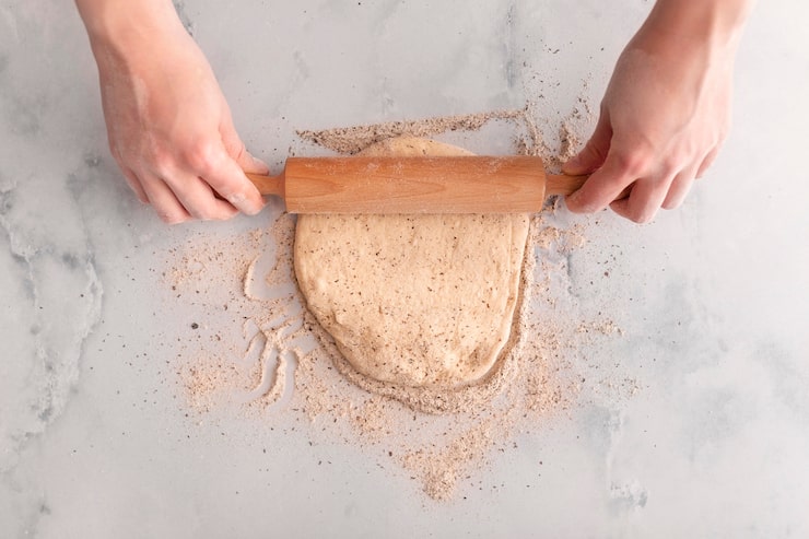 Раскатывайте тесто на поверхности, немного присыпанной мукой. Для соединения краев пирожков смачивайте тесто влажными руками.