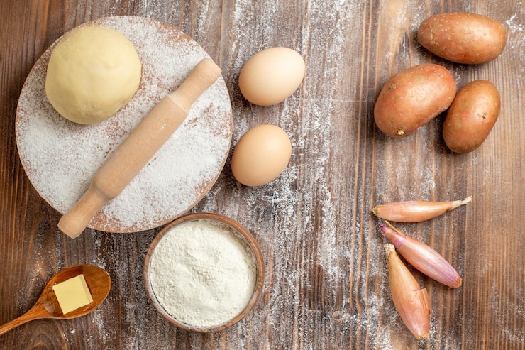 Соберите все нужные продукты, чтобы начать приготовление теста из кукурузной муки для пирожков.