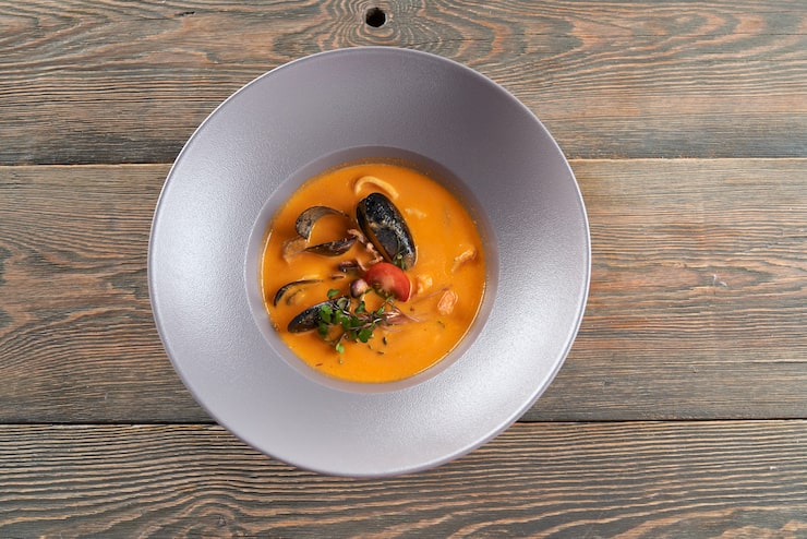 Морепродукты считаются изысканным деликатесом. Чтобы сохранить их уникальный вкус, необходимо знать, как их правильно готовить. Для приготовления блюда можно использовать разнообразные морепродукты; чем их больше, тем более насыщенным и вкусным получится готовое блюдо. Суп подают горячим, тщательно выкладывая дары моря в тарелки.