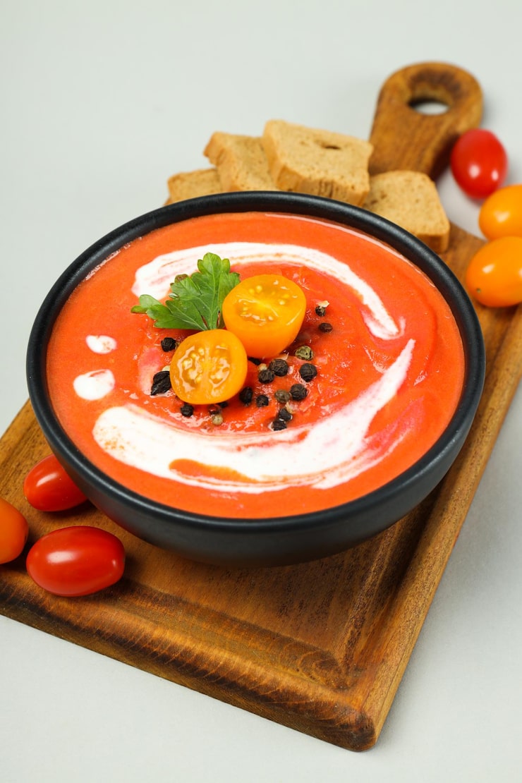 Томатные супы пользуются большой любовью на кухнях южной Франции и Италии. Спелые помидоры и душистые травы, прогретые на солнце – базилик, петрушка, орегано – придают этим супам неповторимый аромат и делают их поистине восхитительными. Сейчас я расскажу, как приготовить вкусный томатный суп!
