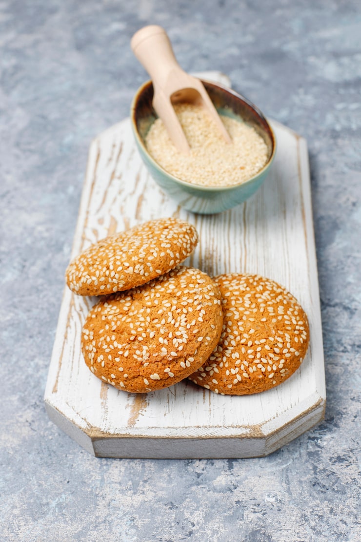 После этого слегка увлажните поверхность водой из пульверизатора и добавьте семена кунжута. Выпекайте в предварительно нагретой духовке при температуре 180 градусов в течение 30 минут. Учитывайте особенности вашей духовки, поскольку время приготовления может варьироваться!