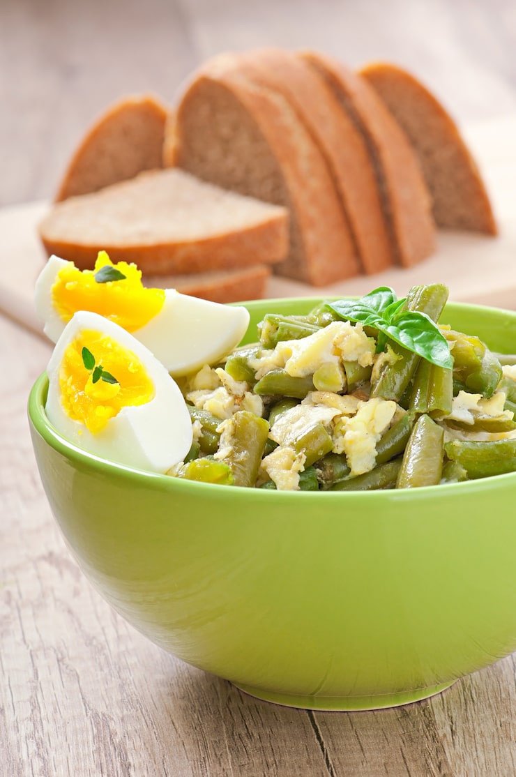 При желании вместе с яйцами вы можете добавить вареную колбасу «Докторскую» или «Любительскую», они отлично подходят ко всем ингредиентам. Хорошим дополнением к этому блюду станут домашние соленья.