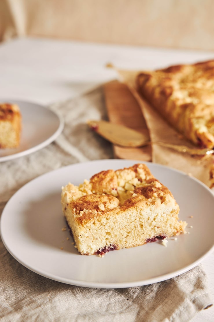 Аккуратно выложите творожную начинку в форму и распределите ее вилкой или силиконовой лопаткой. Поставьте в духовку на среднюю полку.