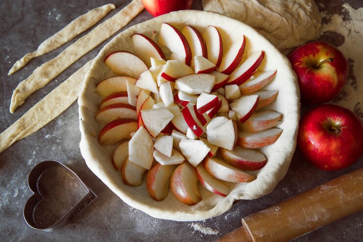 - Сахар 4 ст. ложки (три столовые ложки — для приготовления теста, одна столовая ложка — для посыпки яблок)