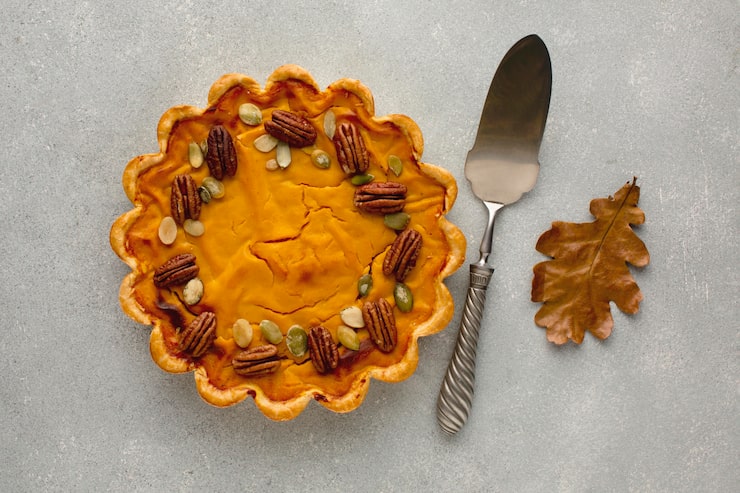 Выпеченный пирог необходимо полностью остудить перед подачей. Для украшения можно слегка посыпать его сахарной пудрой.