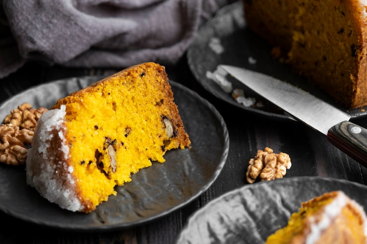 Тыквенный кекс с яблоками испечен. При желании выпечку можно посыпать сахарной пудрой.