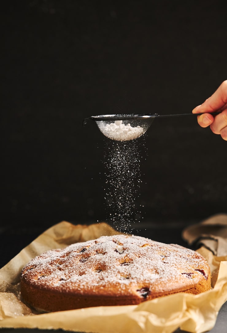 Всыпьте муку и разрыхлитель, тщательно перемешайте.