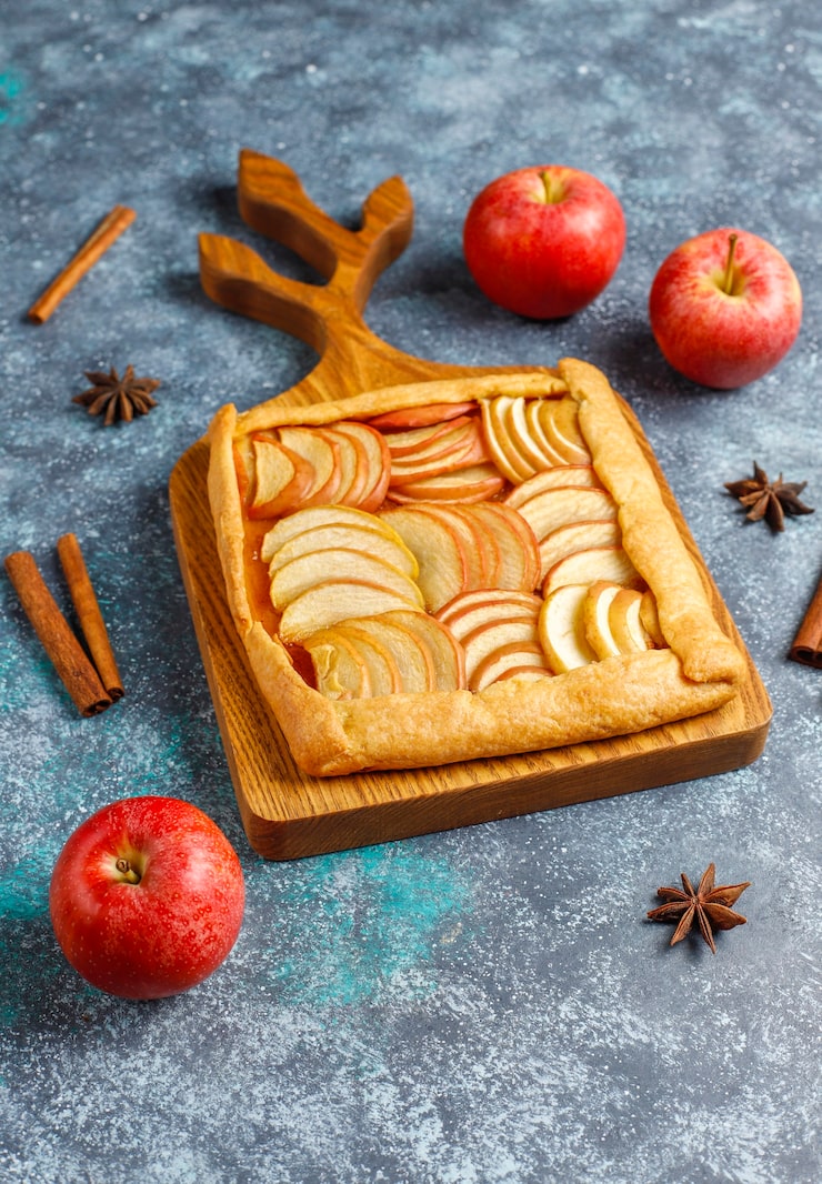 Для приготовления этого десерта предпочтительнее использовать яблоки с кисло-сладким вкусом. Если аромат корицы вам не нравится, замените его коричневым сахаром или используйте обычный сахар с добавлением ванилина. Не экономьте яблоки, чтобы тесто не получилось слишком тонким, так как в противном случае будет трудно выкладывать полоски по окружности.