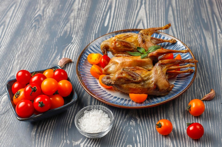 Запеченные перепела обладают привлекательным внешним видом и изысканным вкусом, прекрасно сочетаются с разнообразными дополнениями: в холодное время года — с картофелем и крупами, в теплое — с салатами из свежих овощей и различными соусами. Чтобы птица напиталась ароматами, рекомендуется замариновать тушки минимум на протяжении часа.