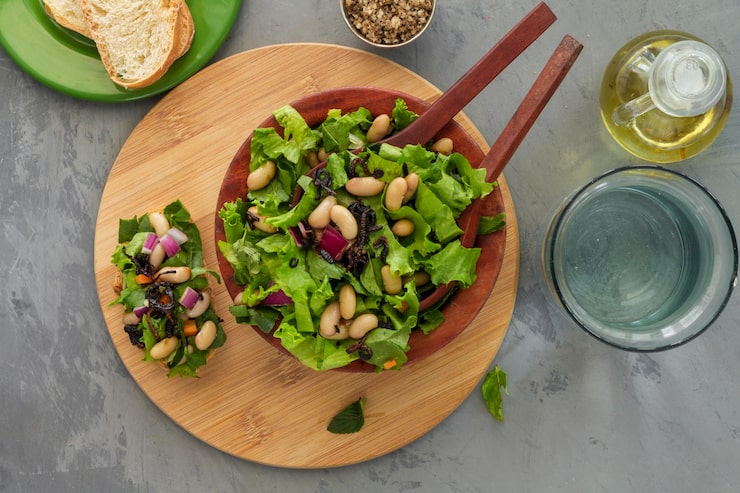 В качестве основы для салата можно использовать различные салатные листья, например, айсберг или романо. Готовый салат лучше не хранить, а также не стоит перемешивать его в одной емкости. Наиболее подходящий способ подачи – порционно.